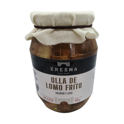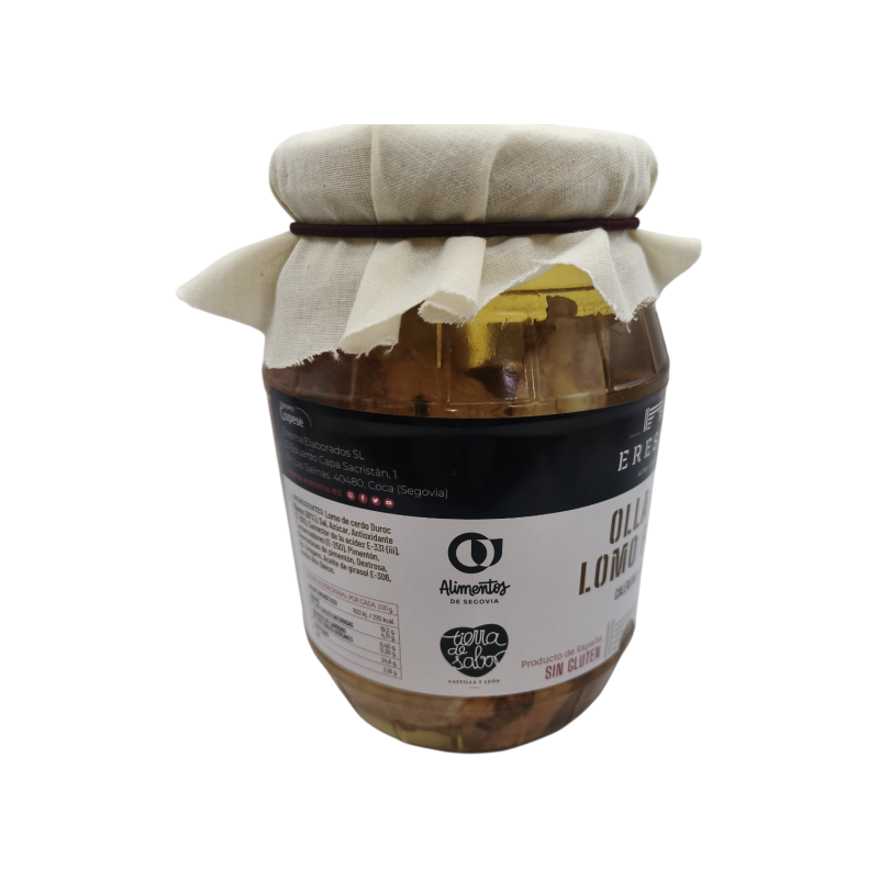 lomo de cerdo raza Duroc, sal azúcar pimentón ajo orégano aceite alto oleico.